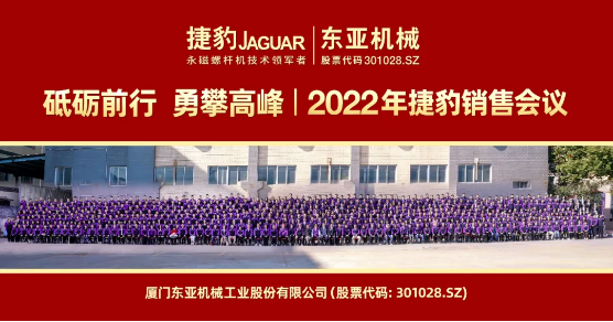 2022年1月8日,東亞機械在廈門總部成功舉辦主題為“勇攀高峰,砥礪前行”2022年銷售大會。來自五湖四海的捷豹家人們匯聚于此,共襄盛舉,以激情飽滿的氣魄、昂揚的斗志,吹響了新的戰斗號角,誓為2022年度目標而戰!?