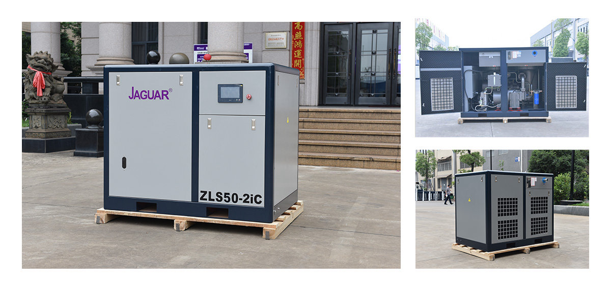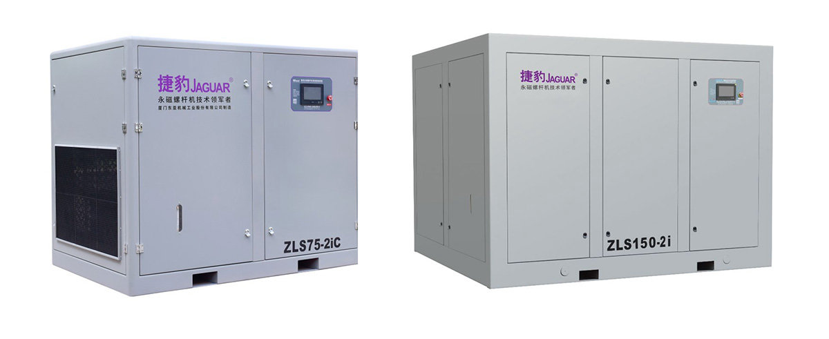 捷豹永磁螺桿機第三代全智能驅動; 雙電機雙主機串聯可分體; 獨立雙點機易維護; 全智能驅動; 螺旋看空壓機兩級壓縮; 特殊的冷卻噴霧設計